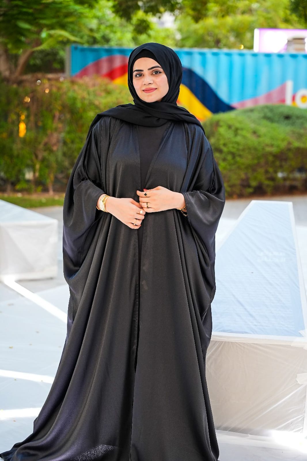 The Aseela Abaya is a two-piece outfit made for modest elegance.  Its inner layer is soft, stretchable, and feels gentle on the skin.  You can adjust the belt to shape the abaya just how you like. The upper layer is crafted with candy crepe shimmery fabric. It adds a light shine, perfect for both daily and party wear. Whether you're at a family dinner or any event, it fits perfectly. The overall design is classy, graceful, and very easy to carry. You’ll feel relaxed and stylish without giving up your comfort. Wear it with flats or heels — the style blends with everything. Waliqsa brings this piece for women who love simple luxury.