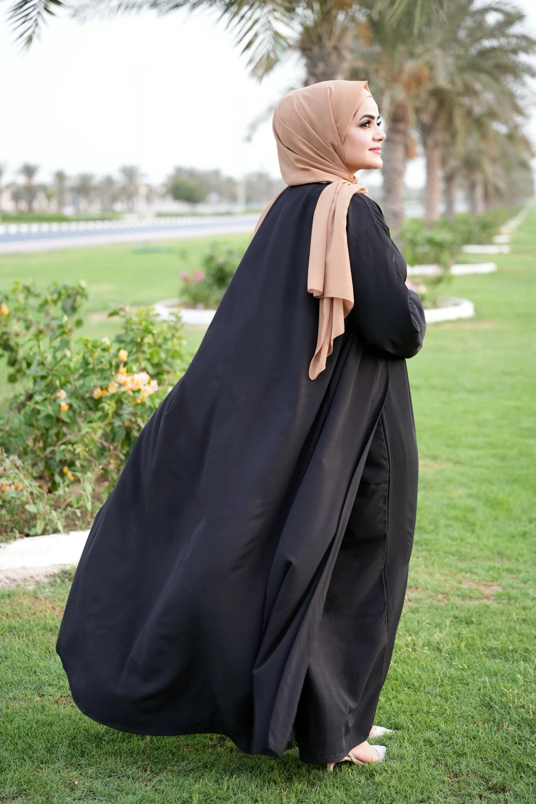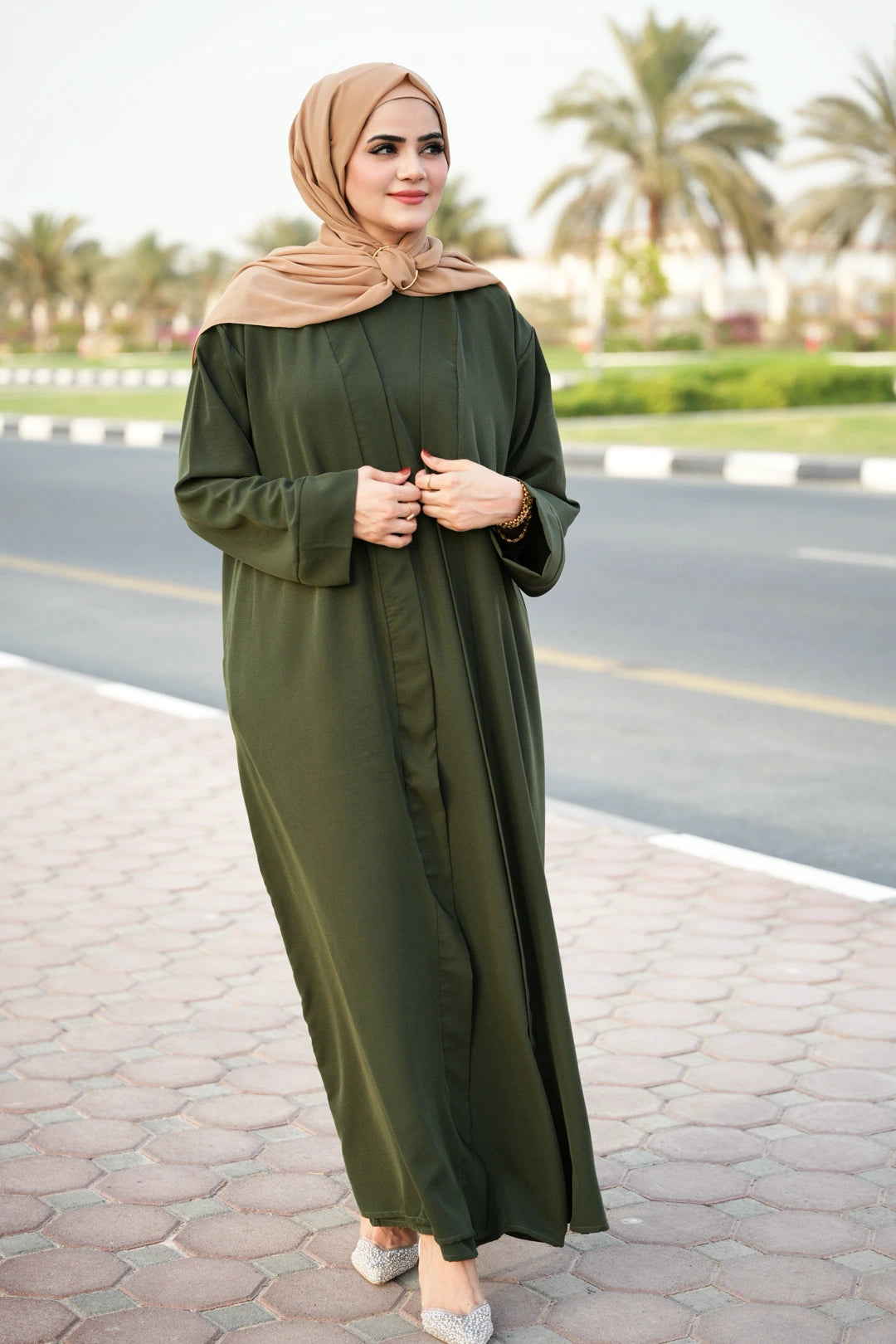 Discover the Haya Abaya, where luxury meets everyday comfort. Designed for the modern modest woman in the UAE, this 2-piece abaya set includes a graceful upper layer and a soft inner slip dress, tailored to make you look effortlessly elegant — day or night.