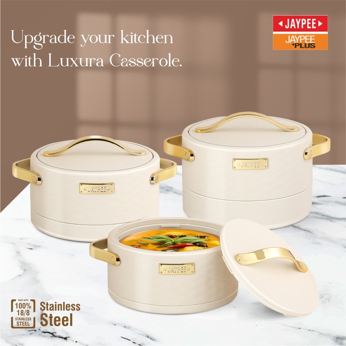 Jaypee Luxura 3-Piece Insulated Casserole Set – Stainless Steel Inner (1500 ml | 2000 ml | 2500 ml)