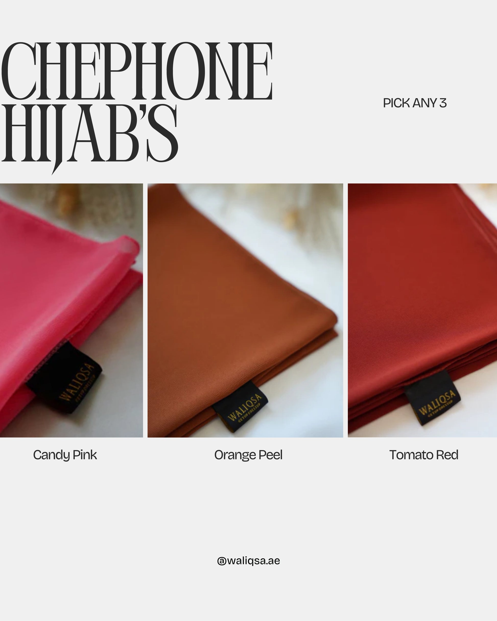 Experience effortless grace and elegance with our Hijab Bundle featuring the Plum, Eggplant, Tosco, Raisin, Zinc, Orange Peel, Peach Powder, Light Lavendar, Dark Lavender, and Olive Green hijabs from Waliqsa. Crafted from premium bubble chiffon fabric, these hijabs offer a feather-light, breathable feel ideal for everyday wear. With no pins required, these hijabs allow for quick, effortless styling perfect for any occasion. Enjoy fast delivery across the UAE and elevate your modest fashion collection with these versatile and elegant hijabs.
