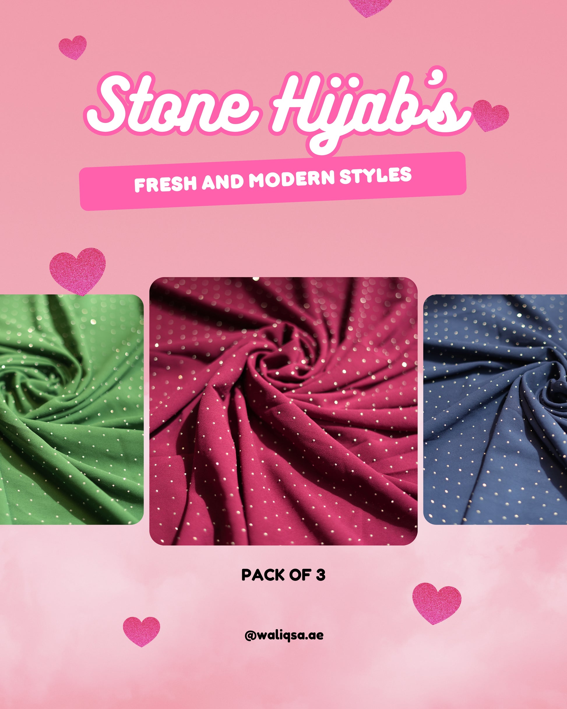 Experience elegance and comfort with our Stone Hijab bundle from Waliqsa. Made from premium Bubble Chiffon, these hijabs are generously sized at 74 x 32 inches for modest coverage. Lightweight and airy, they offer all-day wear without discomfort. The instant wearable style in solid colors suits any occasion, while easy care ensures lasting beauty. Versatile for daily wear, outings, events, and gatherings, these hijabs offer fast shipping for your convenience. Choose from a variety of colors like Black Golden, Navy Blue White, or Mustard Golden to enhance your wardrobe effortlessly.