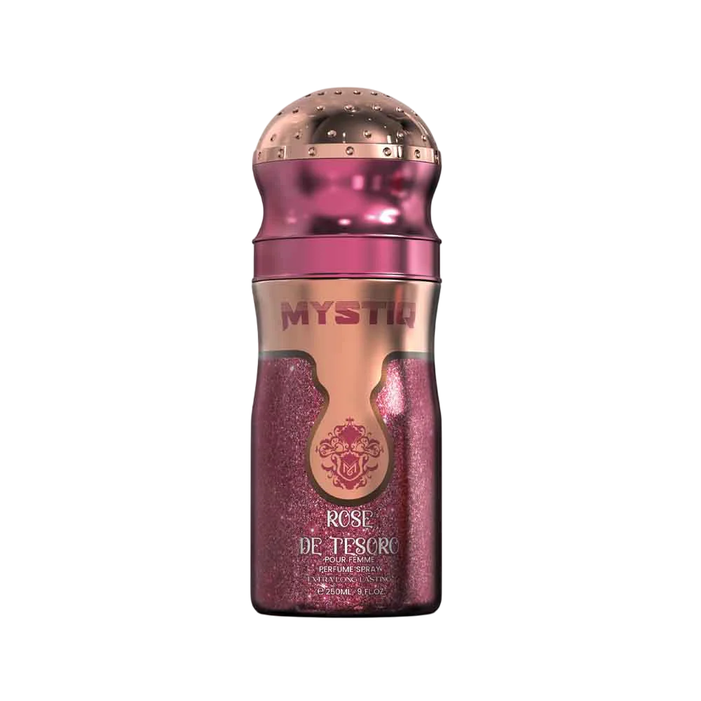 Mystiq Rose De Tesoro is a mesmerizing body spray for women that narrates the eternal beauty, timeless elegance, and pure essence of women. Experience the burst of vibrant energy with bergamot and mandarin, while the soft scent of rose creates a romantic aura. The fragrance settles with comforting notes of cashmere and wood, creating a delightful sensory experience. From the first spray to the last, Mystiq envelops you in mystery and confidence, empowering you to seize every moment with poise and grace. Mystiq body spray embodies this spirit of exploration, offering a fusion of body spray, perfume, and deodorant- adapting to your desires.